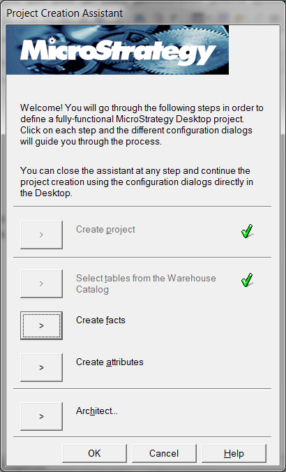 You use the Project Creation Assistant when you initially create the project. You can then use other interfaces to create more complex facts and attributes as well as user hierarchies or to fine-tune the project.