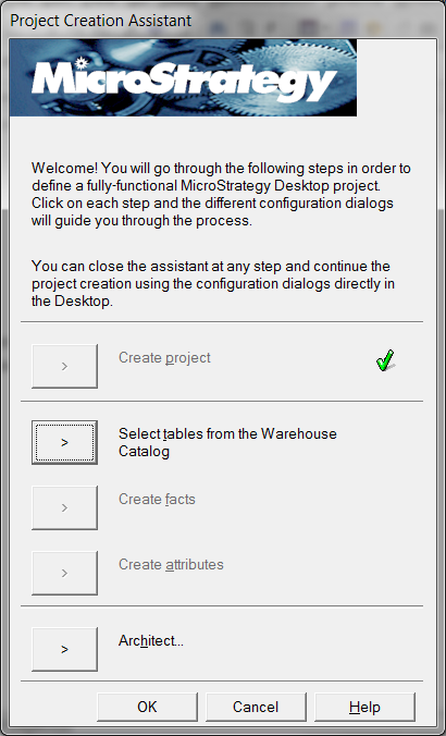 Project Creation Assistant –> Helps to create a project from kick start ( Creating project object/pull tables from WH/Create simple attributes/facts/etc..)